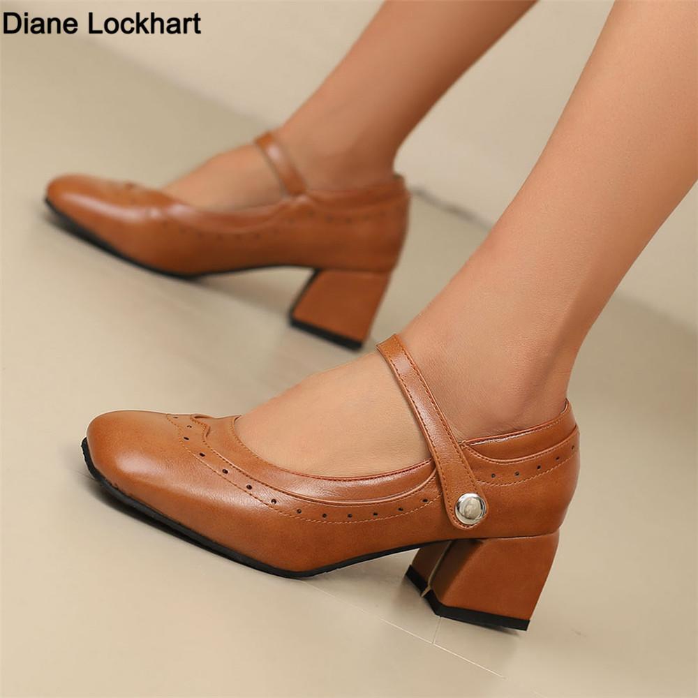 Fashion High-heeled Shoes Women Pumps Ankle Strap Buckle Thick Heels Ladies High Heels Platform Mary Janes Women Pumps Footwear 34-48