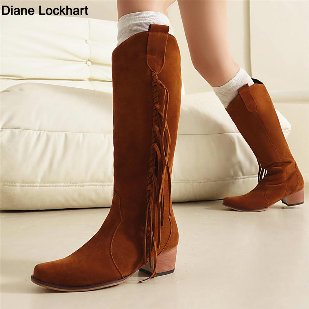 Fashion Women Winter New Simple Solid Color Thick-soled High Boots 2025 Fashion Tassel Cowboy Boots Design Casual Ladies Formal Boots