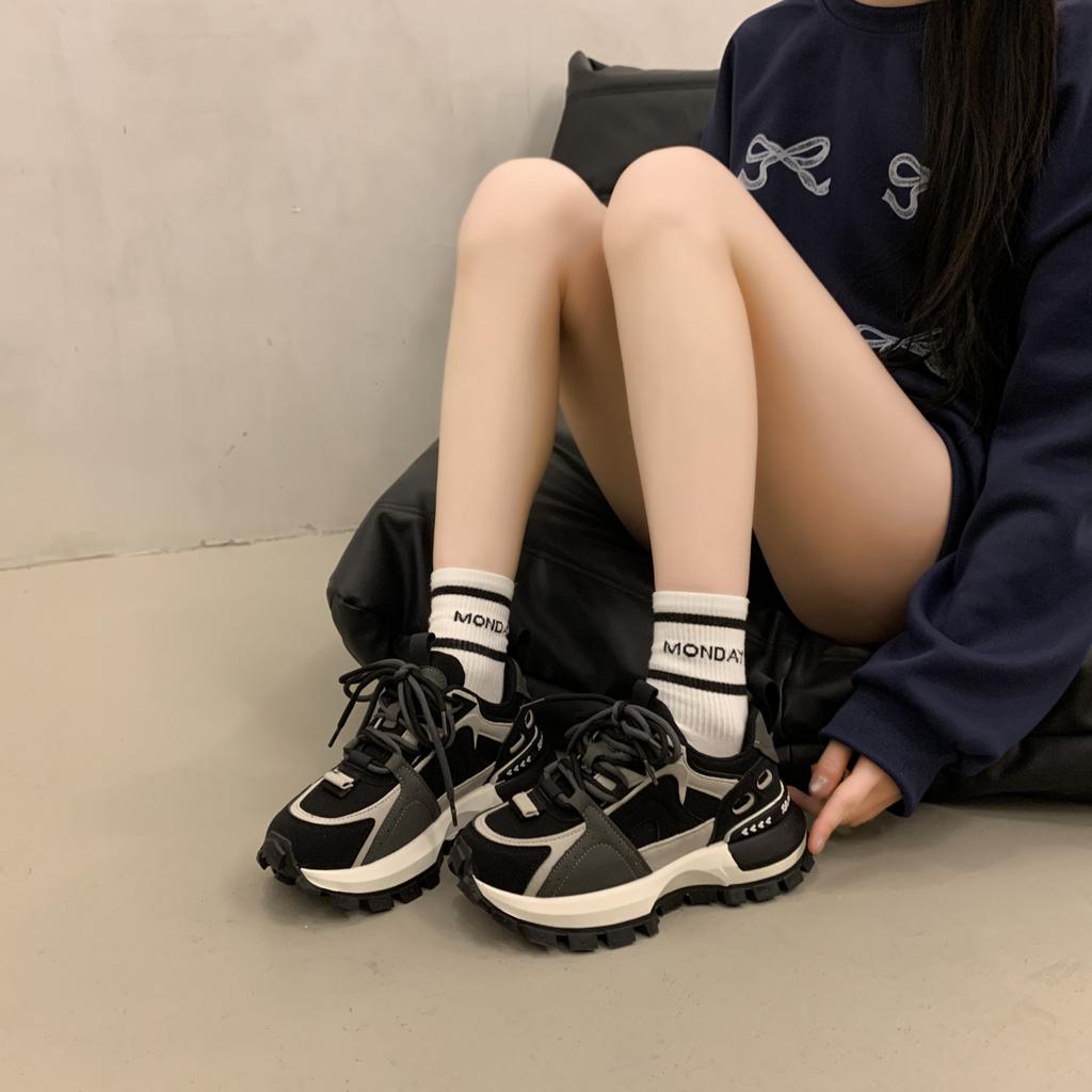 Fashion Women's Casual Shoes Medium Heel Thick-soled Two-color Shoelaces Lace-up Anti-Slip Sole Sports Leisure Trend Zapatillas De Mujer