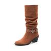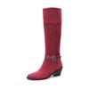 Fashion New Solid Color Comfortable Fashion Knee-high Fashion Ankle Strap Buckle Boots Round Head Square Heels Increase Winter High Boot