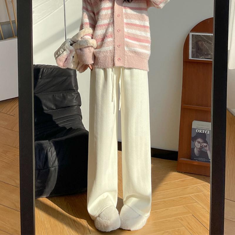 Chenille Herringbone Wide-leg Pants for Women's Spring and Autumn New Style Slim Loose Straight Pants for Women's High-waist Casual Pants