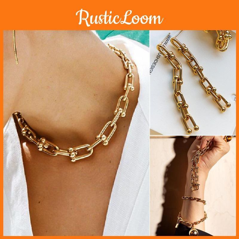 Unique Geometric Design Minimalist Ushaped Horseshoe Buckle Chain Necklace Bracelet
