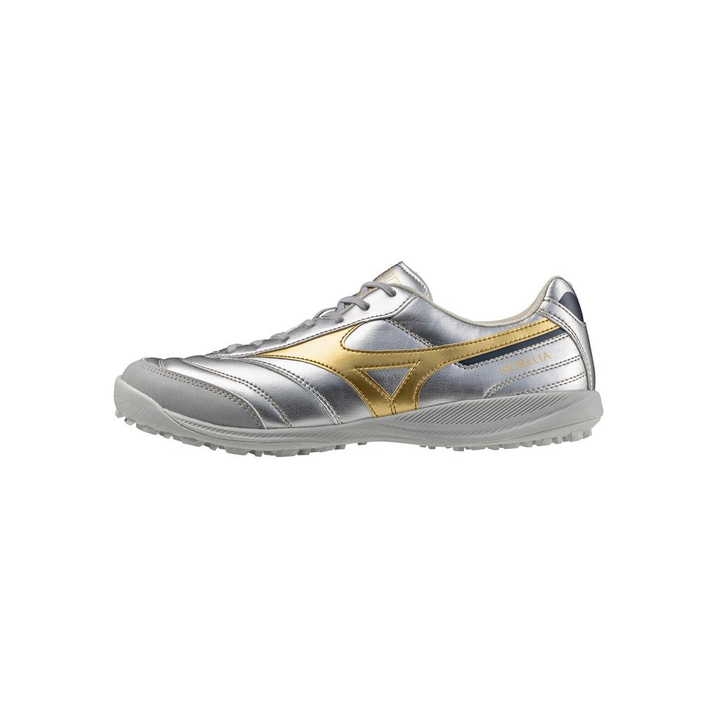 Mizuno Morelia Sala Pro Comfortable Trendy Versatile Fashion Synthetic Leather Non-Slip Football Shoes Unisex Football Shoes Gold Silver Q1GB2513-04
