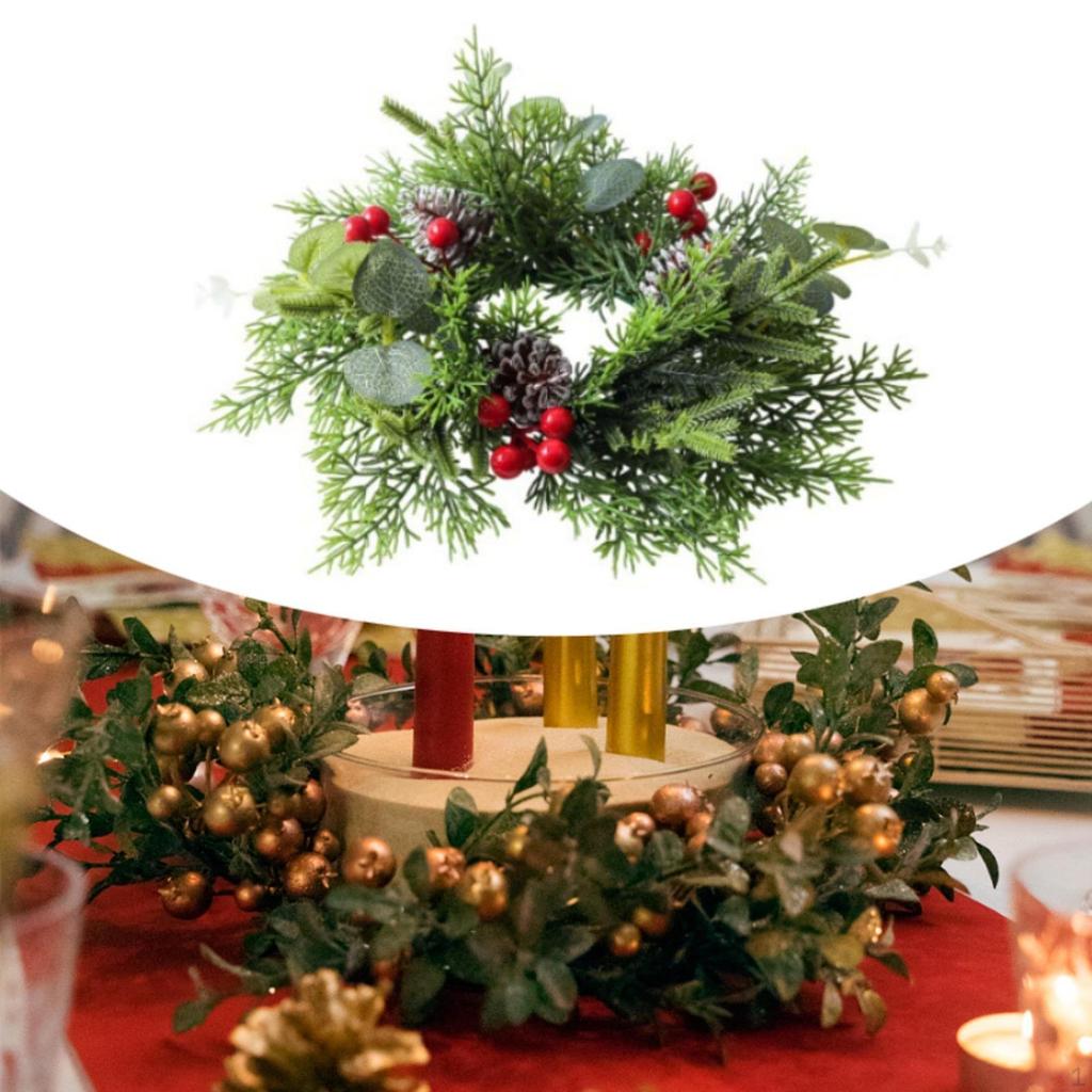 - 【Christmas Decoration】: This beautiful Christmas candle ring wreath features pine and red berries (artificially made) to enhance your holiday atmosphere and add a touch of festive charm to any space