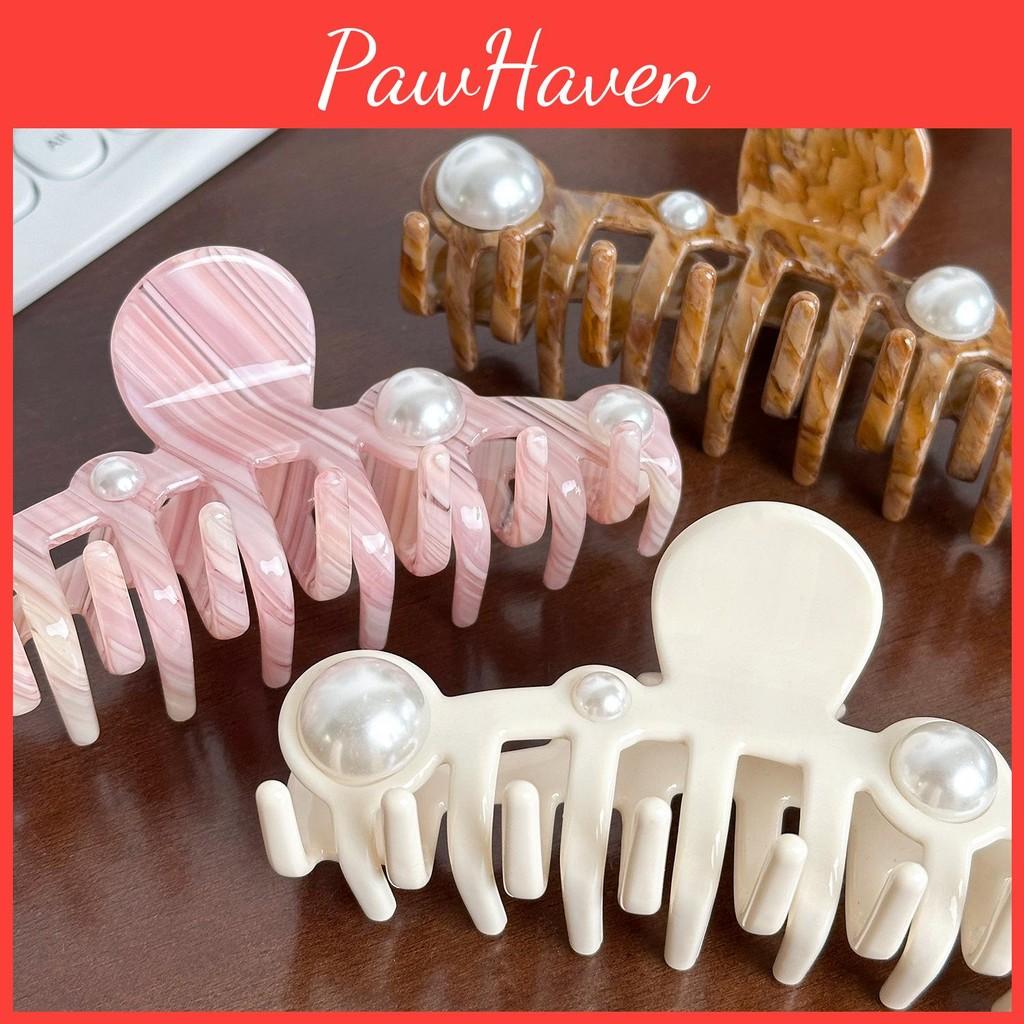 Extra Large Fashionable Pearl Inlaid Acetate Hair Clip Versatile Claw For Effortless Style