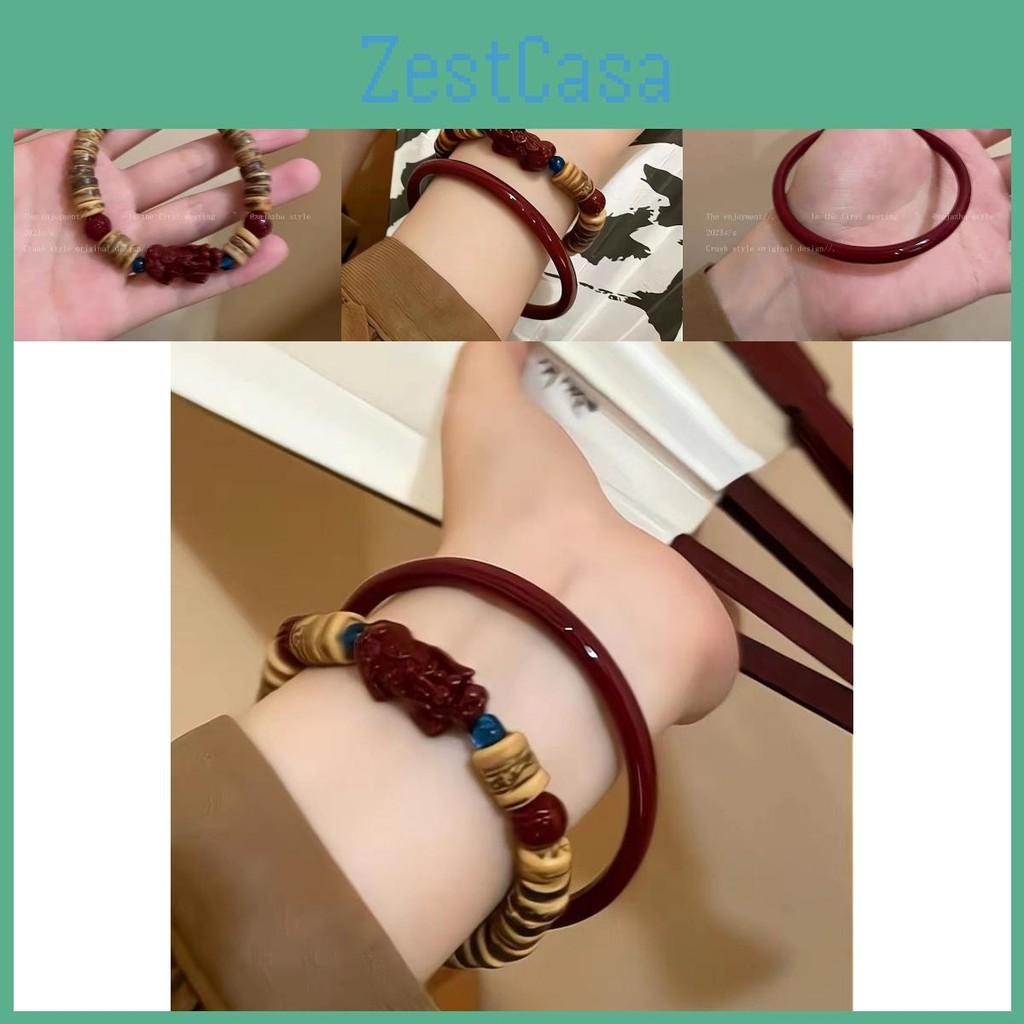Each bracelet is a testament to the art of handcrafting, showcasing meticulous attention to detail and superior quality. The red glass bangle is crafted from high-quality materials, ensuring a luxurious feel and a long-lasting shine. The coconut shell beads offer a natural, earthy contrast, enhancing the overall aesthetic appeal. The Pixiu charm, intricately carved, serves as a powerful talisman, believed to ward off evil spirits and bring prosperity. This unique combination makes the bracelet not just a fashion accessory, but a piece imbued with cultural significance and positive energy.