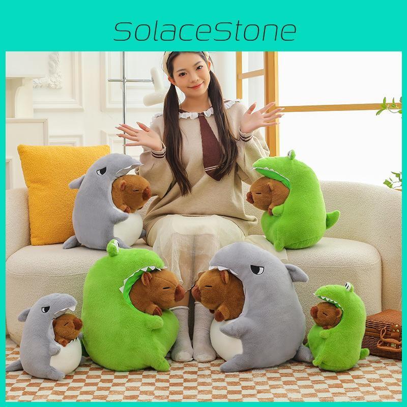This plush toy features a unique hybrid design, combining elements of a shark, crocodile, and capybara, providing an engaging animal-themed collectible. Made of short-pile PP cotton, it offers a soft, durable touch and measures available in 12, 16, and 20 inches.