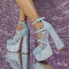 Fashion Size 36-47 Rivet/Lace Edge Platform High Heels Nightclub Sexy Spicy Girl Stage Shoes European American Women's Single Shoes