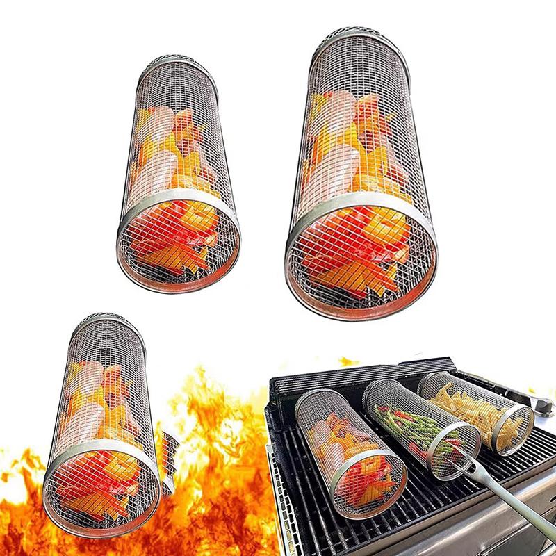 Stainless Steel Cylindrical Barbecue Basket For Outdoor Barbecue Rolling Barbecue Basket Portable Outdoor Camping Barbecues Tool