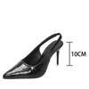 Fashion 2025 Spring and Summer New Black Patent Leather High Heels Women Slim Heel Shoes Temperament Minority Pointed Sandals