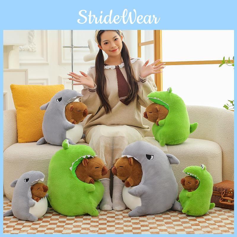 This plush toy features a unique hybrid design, combining elements of a shark, crocodile, and capybara, providing an engaging animal-themed collectible. Made of short-pile PP cotton, it offers a soft, durable touch and measures available in 12, 16, and 20 inches.