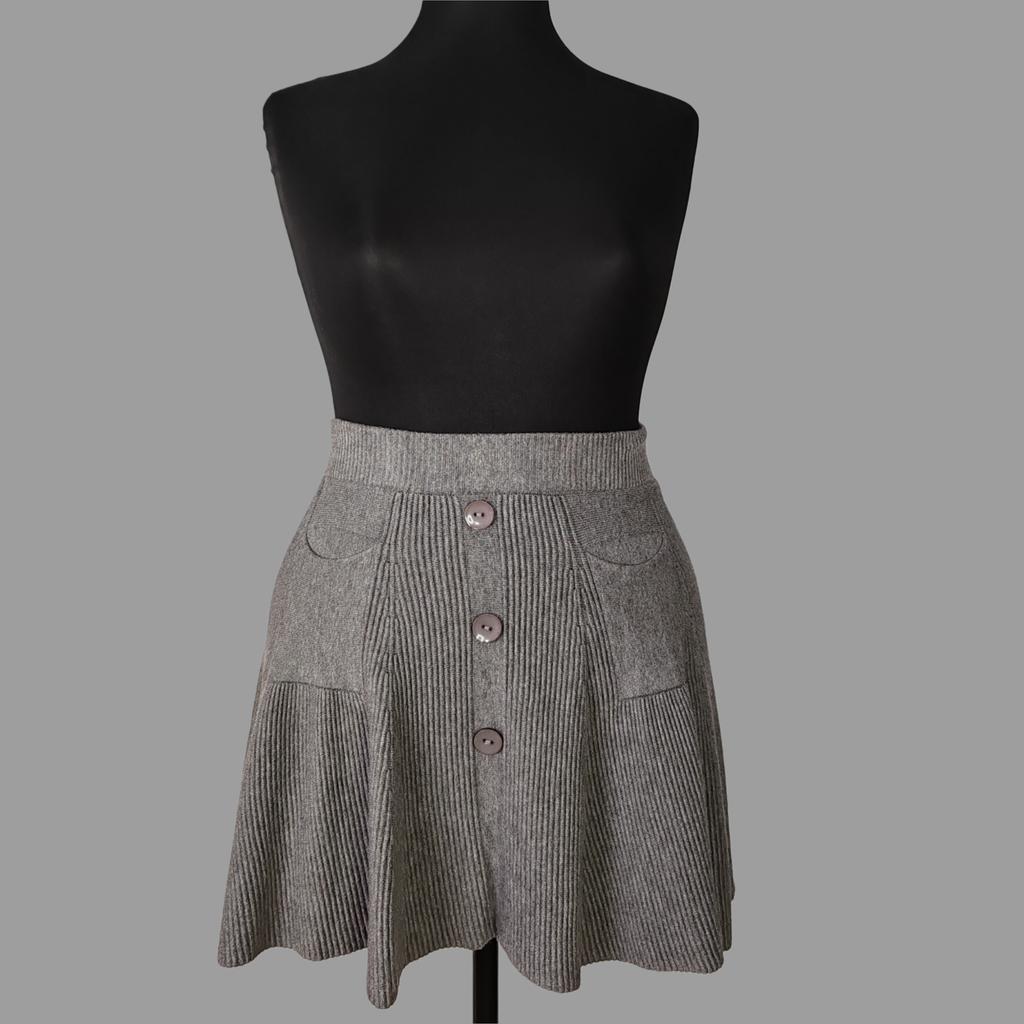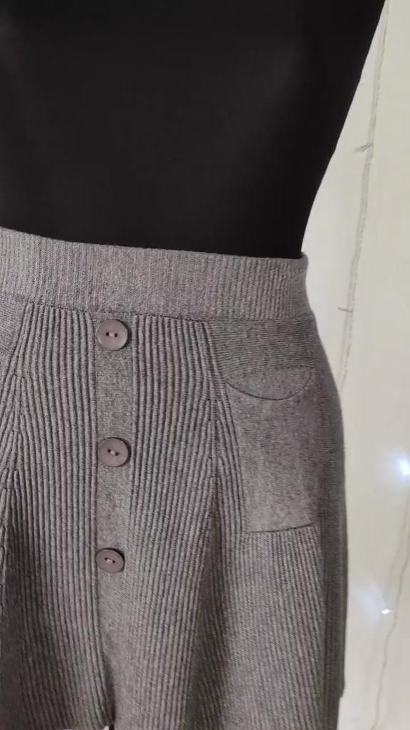 Autumn Winter Women Mini Knitting Skirt High Waist Beige Gray Black Knitted Short Skirt Sweet Buttons High Waist Warm Skirt With Pockets