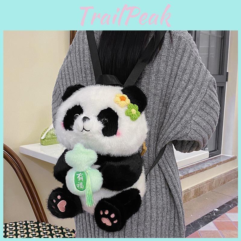 Cute Panda Flower Backpack Mahjong For Wealth Apple Honey Jar Avocado Plush Bag