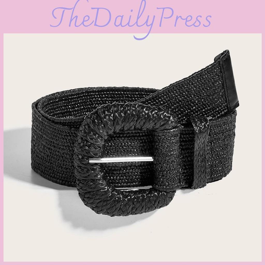 Pp Style Weaving Straw Braid Belt Round Buckle Wide Design Summer Dress Outfit