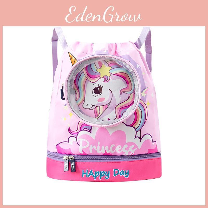 This children's beach bag features a lightweight and portable design, measuring 39 x 31 x 21 centimeters, crafted from durable Oxford cloth. Its spacious main compartment enables convenient storage of swimwear, towels, and toys, while the dry-wet separation shoe compartment helps keep items organized and protected from moisture. The adjustable drawstring closure provides quick access and secure closure, making it suitable for active children.