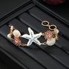 1PC Bohemian Beach Bracelet with Starfish, Coral and Shell Jewelry - Gold KC Plated Nautical Jewelry, Blue Pink Crystal