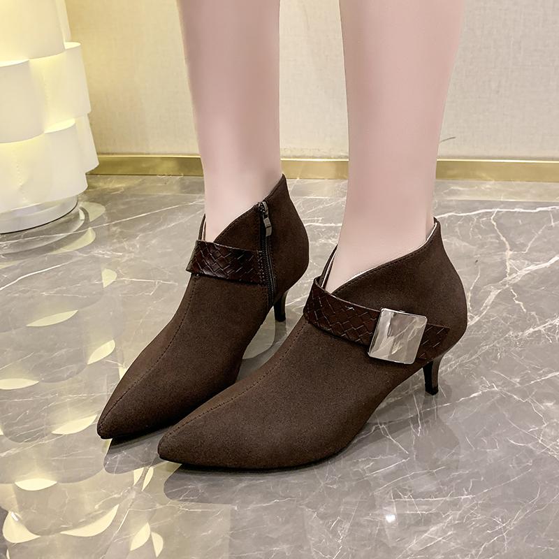 Fashion Women Ankle Boots Suede Pointed Toe Mid Heels Sexy Shoes 2025 Trend Fashion Pumps Goth Winter Designer Chelsea Botas De Mujer