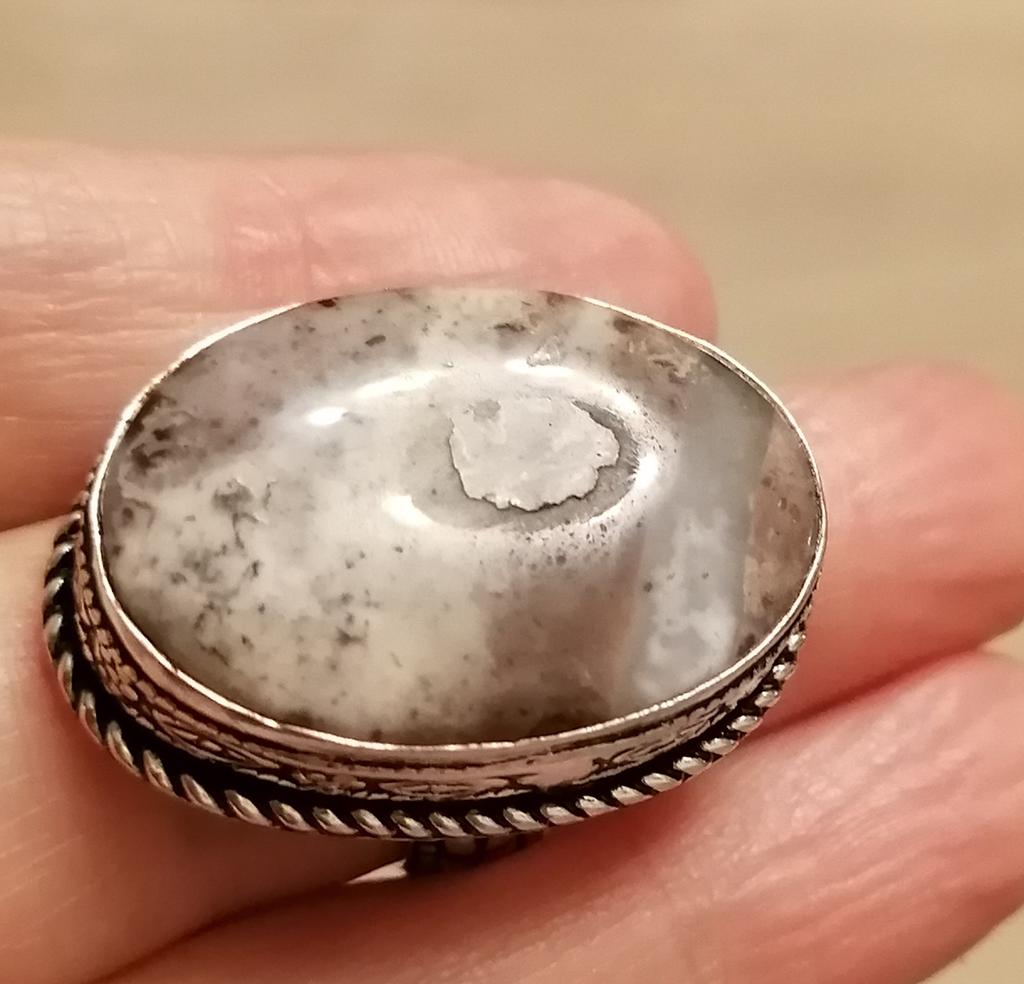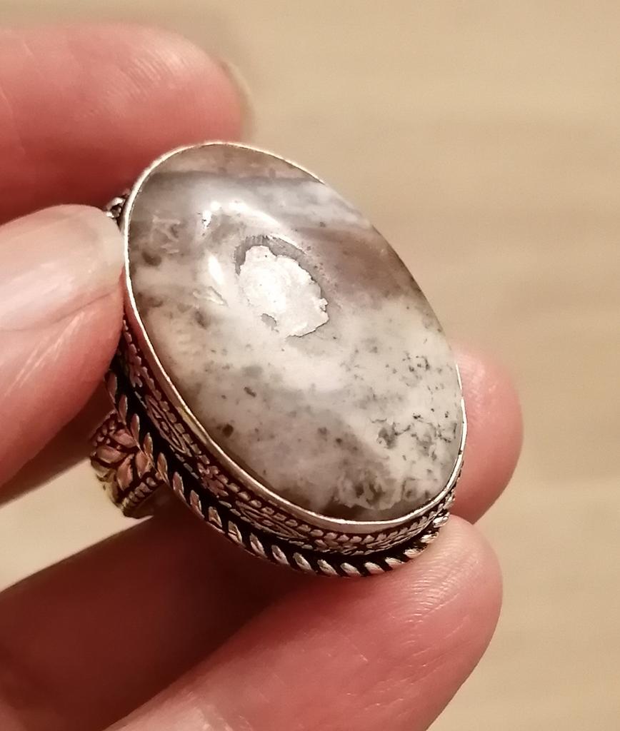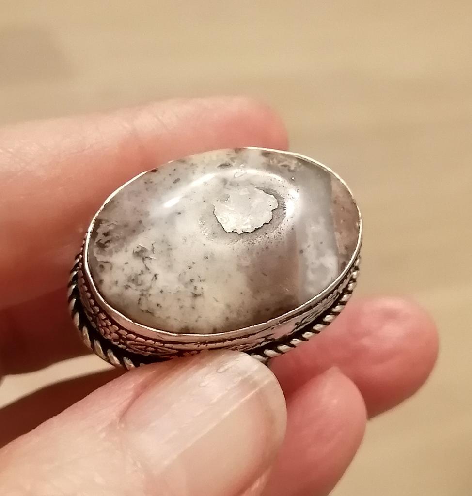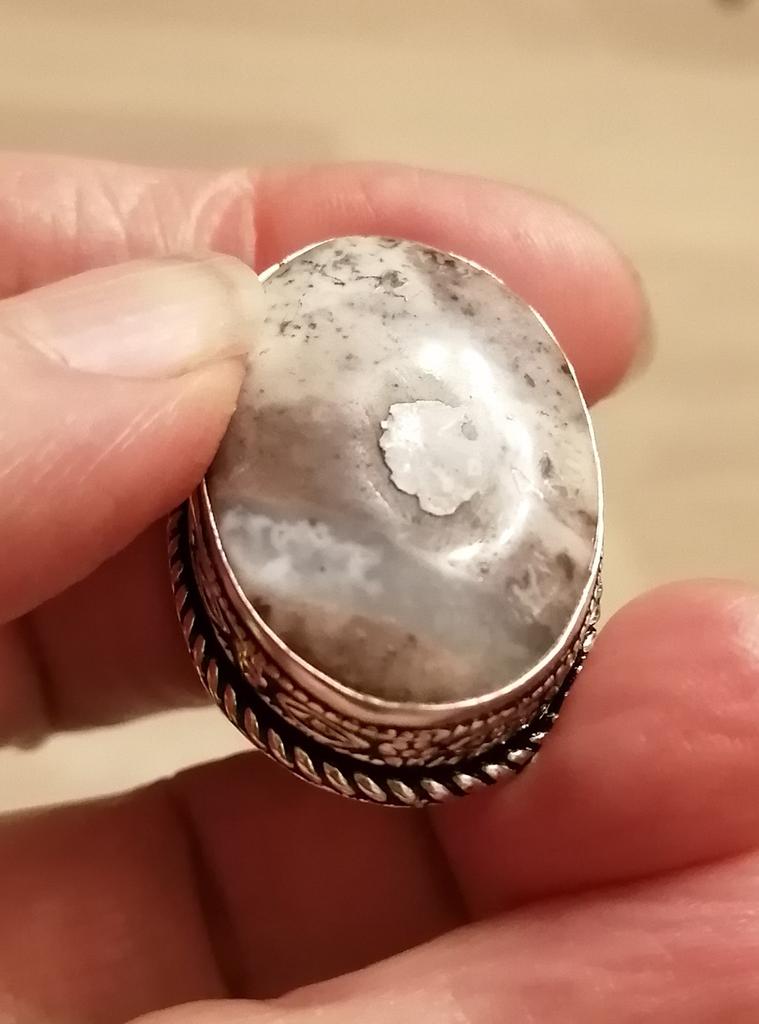 Beautiful, silver, high-quality ring with lace agate, as in the photo. The size corresponds to the ordered one. The silver hallmark is present. The size of the stone is 3.2 cm × 1.8 cm.