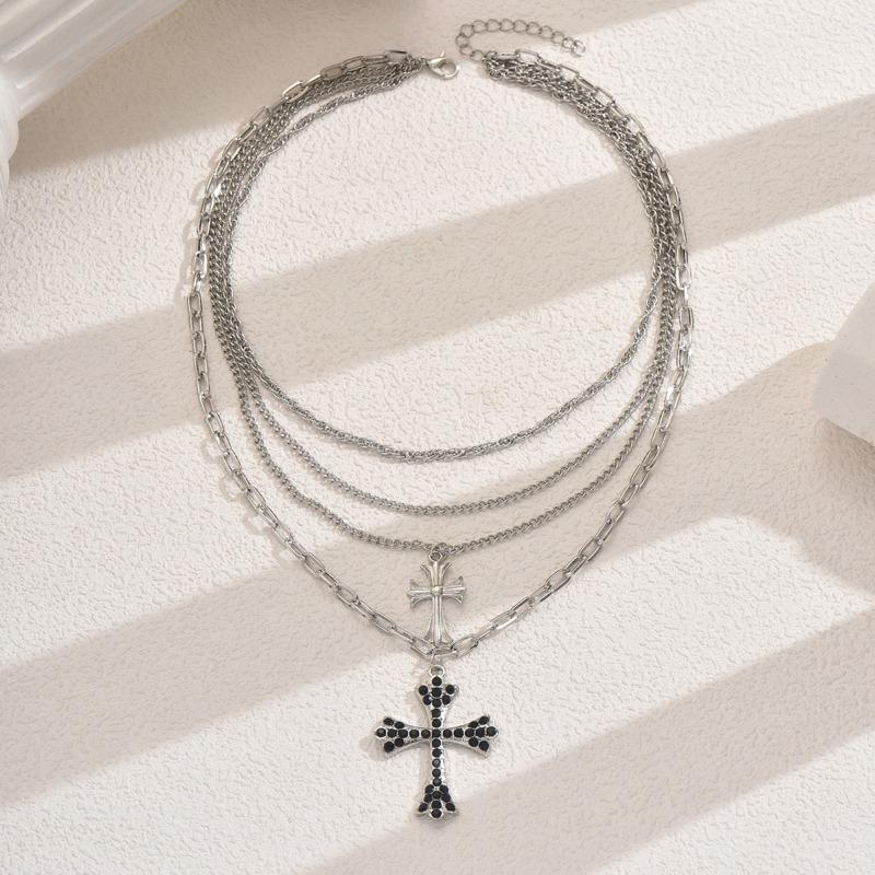 Hip-hop Necklace Jewelry Multi-layered Wearing Cross Pendant Necklace Female High-end Collarbone Chain