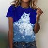3D Printed Artistic Cat Pattern Women's T-Shirt Fun Animal Pet Design Summer Casual Short Sleeve Round Neck Top