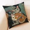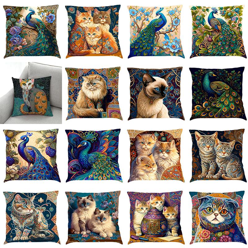 Nordic Style Peacock Cat Puppy Oil Painting Print Pillowcase 45x45 Cm Living Room Sofa Cushion Cover Bedroom Home Decoration