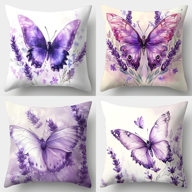 Graceful Purple Butterfly & Lavender PillowcaseLiving Room Sofa Cushion Cover, Soft and Comfortable, Bedroom Room Decoration