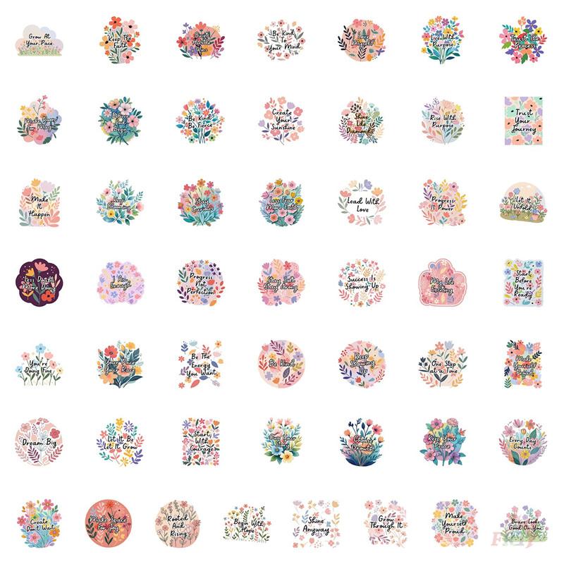 50Pcs/Set Flowers Healing Phrase Stickers DIY Fashion Waterproof Doodle Decals Stickers