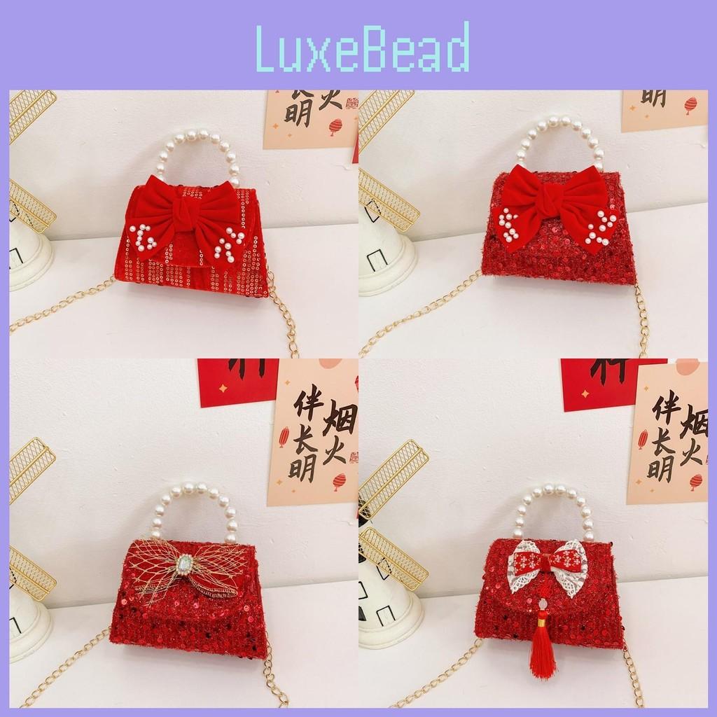 Festive Glittery Red Pearl Bow Bag For Children Ideal For New Year And Wear Casual
