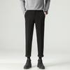 Autumn and Winter New Velvet Thickened Men's Drape Black Pants Small Trousers Men's Slim Straight Casual Pants