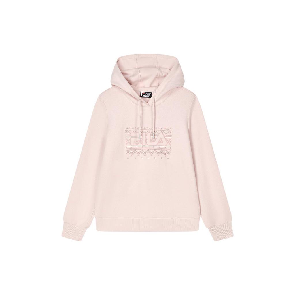 Fila Solid Color Hooded Knit Pullover Sweatshirt Women Tops Cinnamon Apricot F11W347201ALP