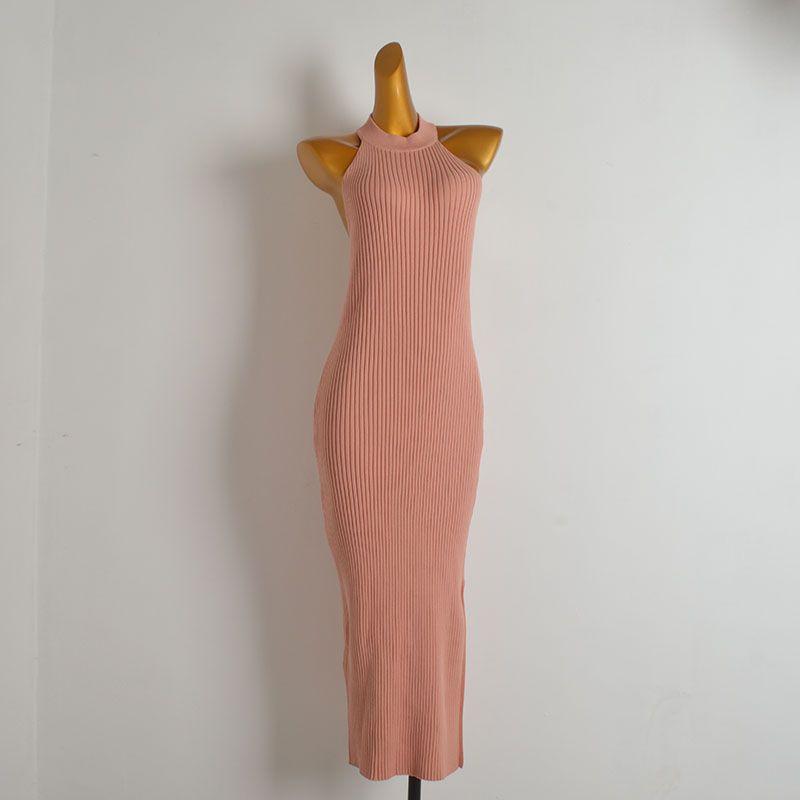Fashion Style Sexy Sexy Halter Lace-up Sleeveless Knit Halter Dress Women's Clothing Silm Hip Split Dress