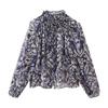 Fashion Wind 2024 Spring New Niche Loose Puff Sleeves Metal Color Line Print Blouse 2429106 330