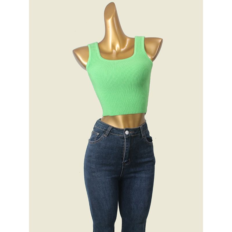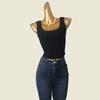 American Style Gyaru Square Collar Vest Foreign Trade Original Order Texture High Waist Knit Inner Wear Can Be Worn Outside Sling