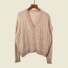 Idle Style Contrast Color V-neck Metal Buckle Knitted Jacket Women's Cable Stitch Korean Style Loose-Fitting Long Sleeve Sweater Outer Wear Cardigan