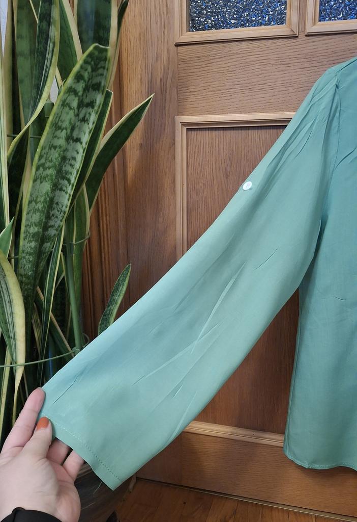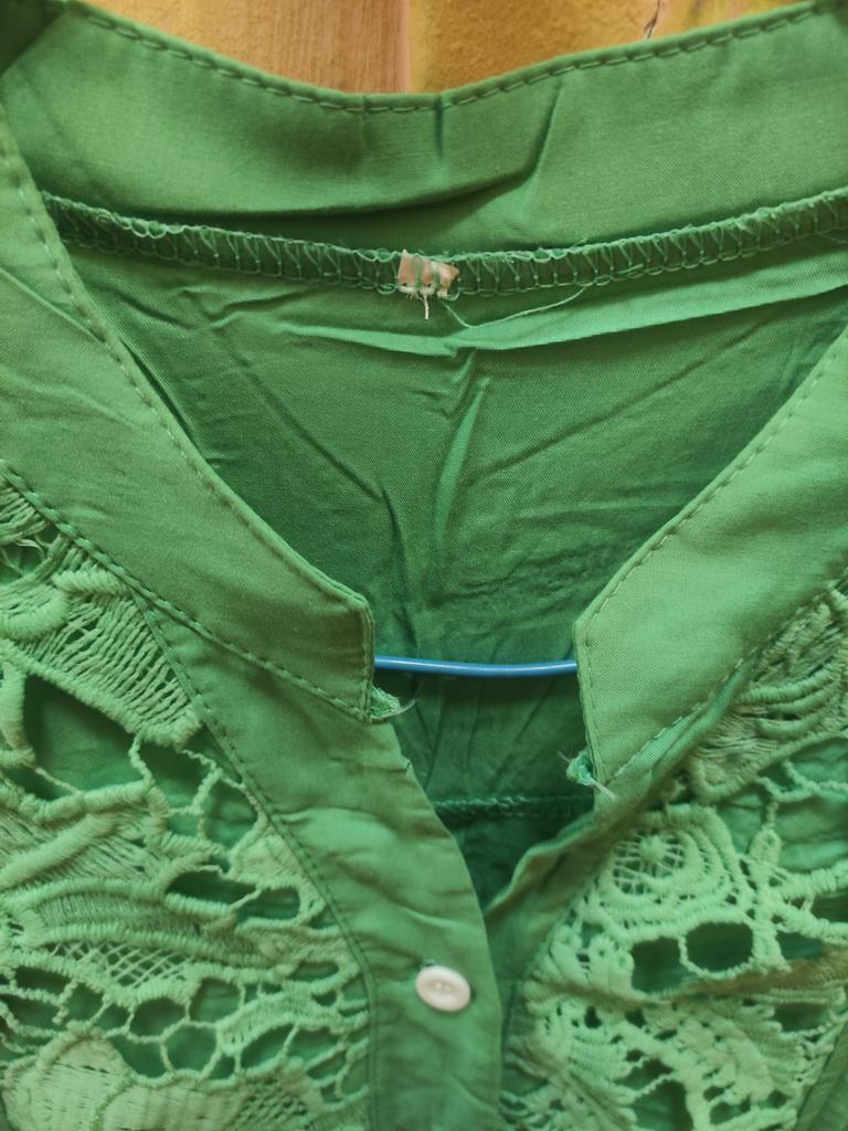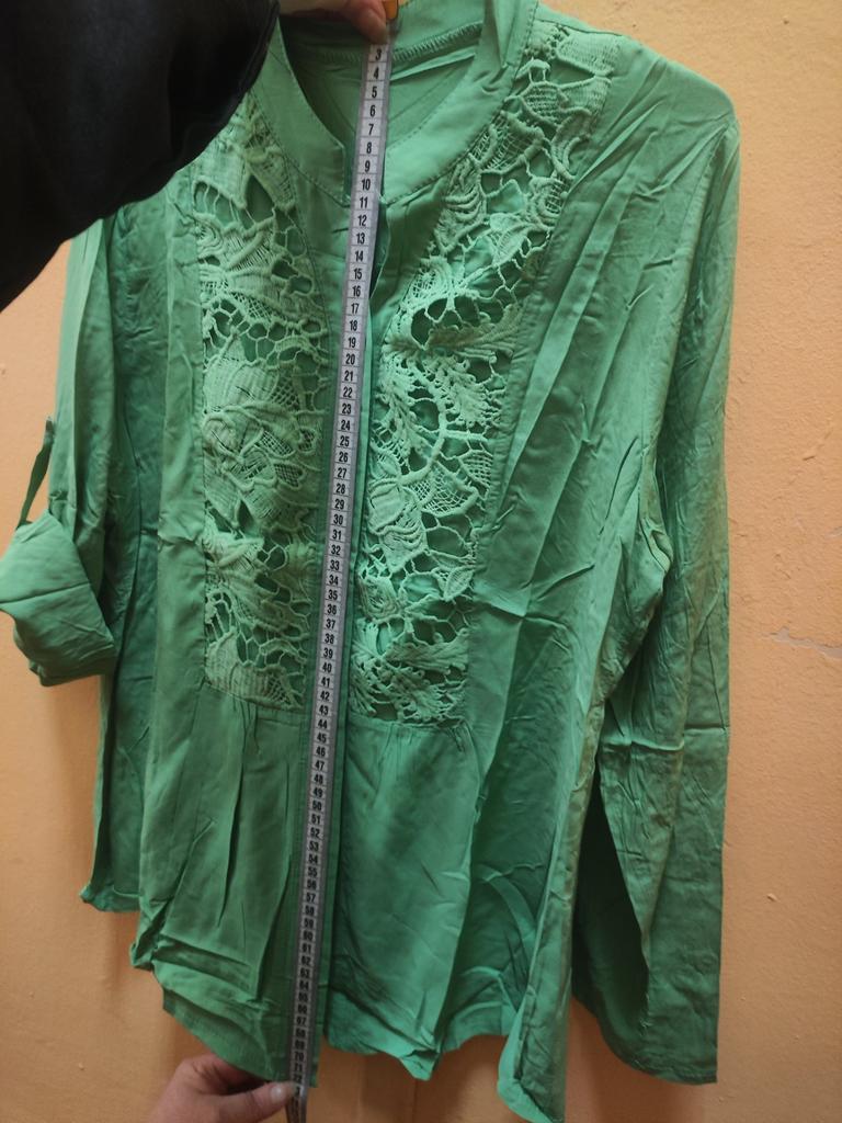 Does not fully correspond and the size tag is torn off. The button is somewhere on the shoulder.