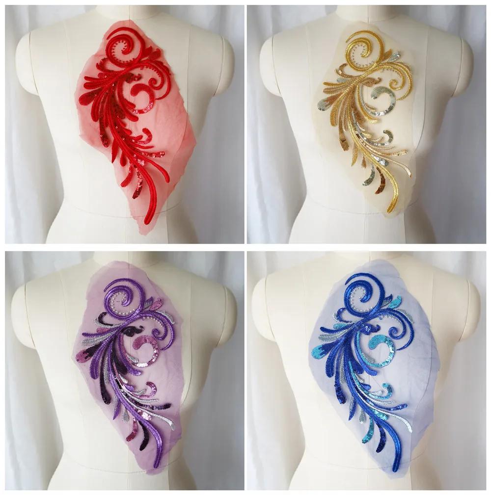 Embroidery Sequin Flower Applique Lace Fabric Trim Mesh Collar For Wedding Bridal Gown Sewing Patch Party Dress Decor DIY Crafts