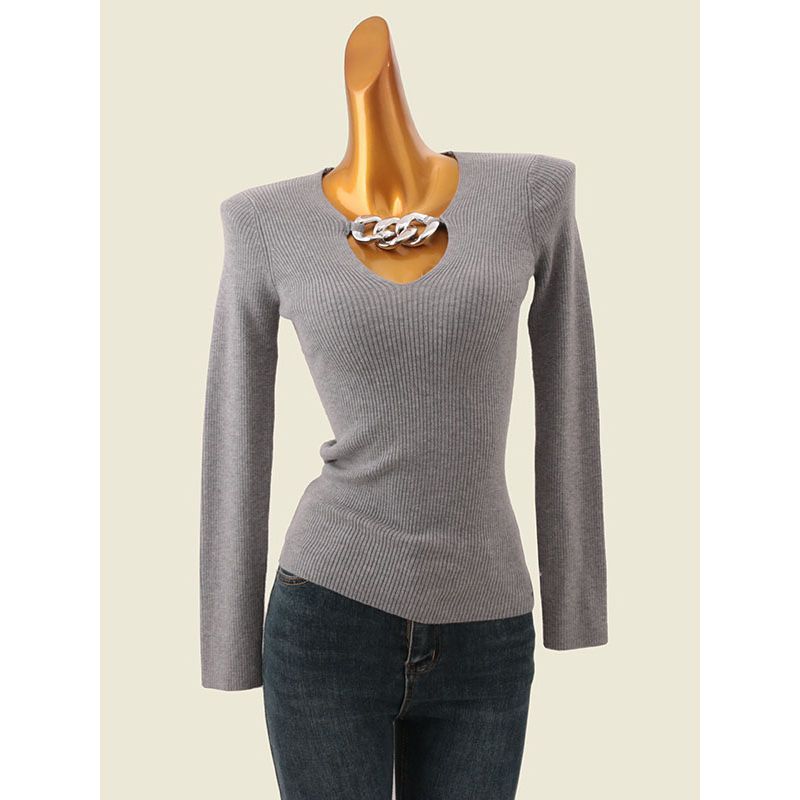 Quality Six Wool V Neck Chain Bottoming Shirt Small Sunken Stripe Silm Long Sleeves Knitting Inner Match Slimming Tops