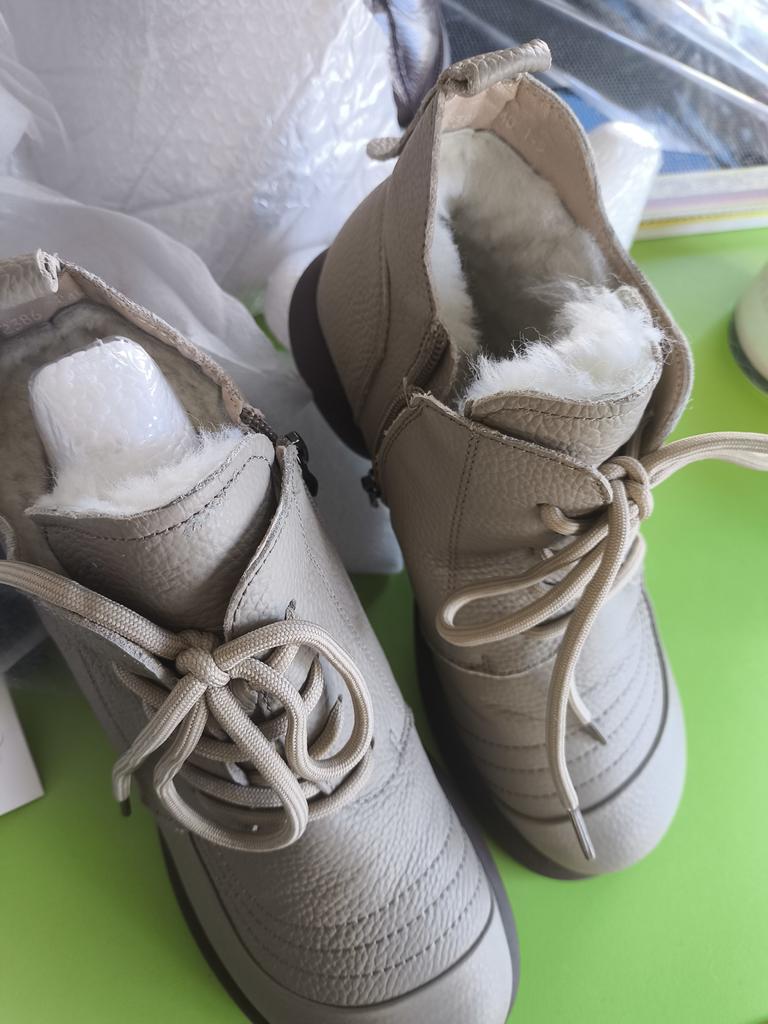Very good, genuine leather. But I received the winter version. Nowhere in the photos is it visible that inside... is wool.