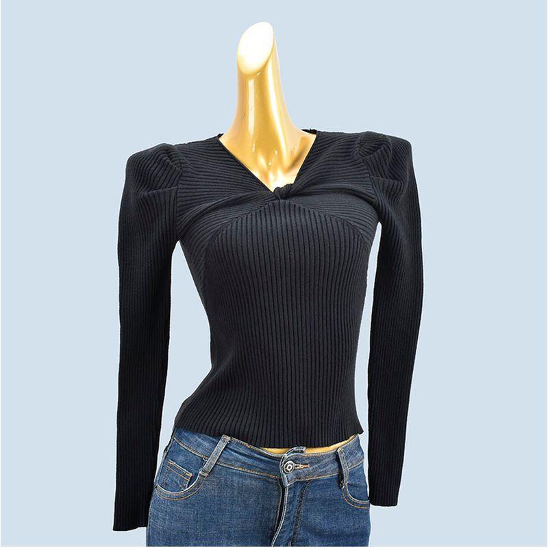 French Style V-neck Cross Western Style Knit Women Spring and Autumn New Slim Fit Slimming Inner Wear Base Sweater Long Sleeve Top