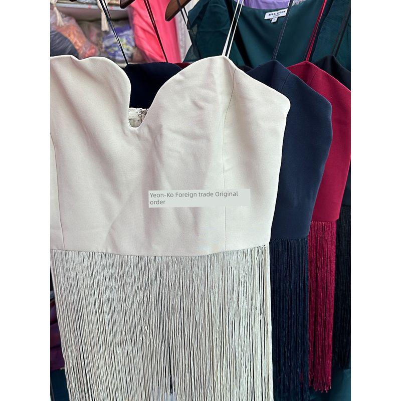 Yan Zi Export Day + Asymmetrical Collar Long Fringe Elegant Sexy Tube Top Vest Tops
