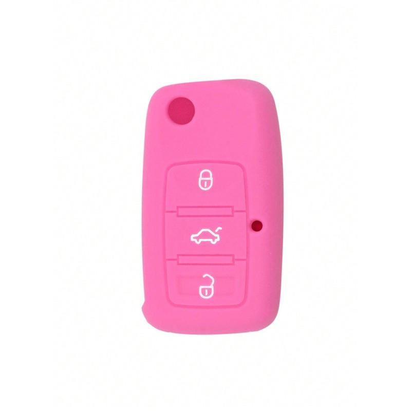 1pc Pink Silicone Car Key Cover for Skoda Car, Anti-drop Key Case
