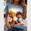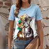 Cute Animal Series 3D Digital Printed Women's Casual and Comfortable Round Neck Short Sleeved T-shirt
