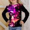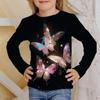 Children's Butterfly Pattern 3D Digital Printing Girl's Casual and Comfortable Round Neck Long Sleeve T-shirt