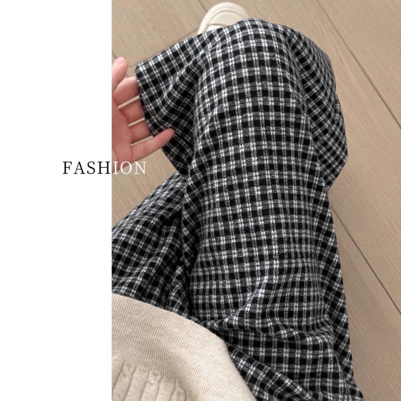Black and White Plaid Wide-leg Pants Women's New Spring and Autumn Straight Loose Lazy Loose Small Yamamoto Pants