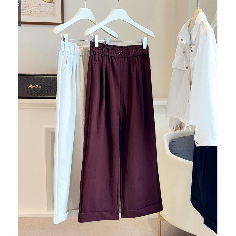 Small Elastic Waist Nine-point Straight Pants Women's White Autumn New High Waist Slim Flanged Casual Pants