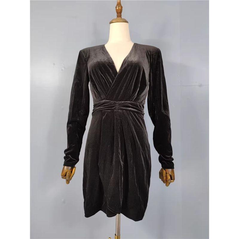 Export Single AQ Home Spring and Autumn New Arrival Long Sleeves Velvet Easiest for Match Special V-neck Long Sleeves Ladies Fashion Commuter Dress