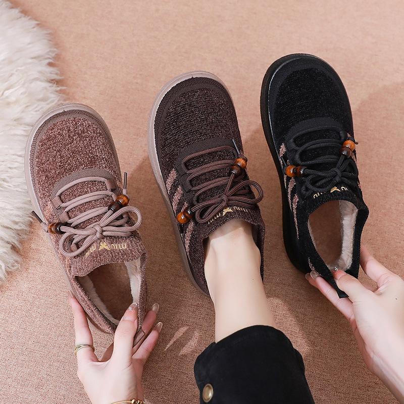 Women's Large Size Soft Sole Winter Warm Fur One Stirrup Snow Boots Padded Lined Ankle Boots Anti-slip Hiking Casual Sports Cotton Boots