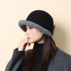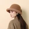 New Autumn and Winter Hat Fashionable and Elegant Woolen Crimped Top Hat Bow Thermos Hat