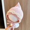 Winter Warm Newborn Fetal Hats Kids Tie Beanies Princess Lace Pointed Knitted Hat Toddler Soft Woolen Crochet Bonnet