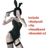 Bunny Girl Cosplay Woman Sexy Lingerie PU Faux Leather Bodysuit with Tie Headband Set Kawaii Rabbit Suit Porno Exotic Costume